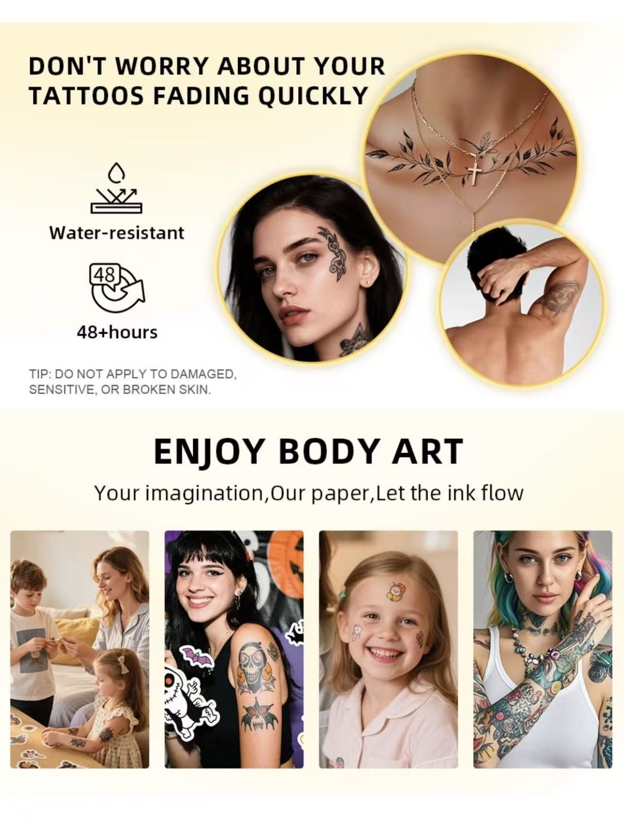 "These tattoo stickers are super cute and safe! My kids loved them. Fast shipping too, arrived in just a few days!"